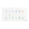 Beställning möjlig endast i samband med design-ID. Ikonerna och/eller texterna konfigureras med hjälp av ett webb konfigurations verktyg. Fritt konfigurerbara multifunktions kontroll element. Med integrerat KNX-busskoppel. Med integrerad temperatur givare. Med integrerad närhets funktion. Push switch funktion: Växlande/ljusreglering/markislind/skicka värden/scener etc. Stöd för KNX funktioner genom innovativt färg koncept (gult = ljus, blått = markis, orange = RTC, magenta = scen och vit = neutral/ingen tilldelad funktion) eller standard belysning röd/grön.