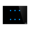 Beställning möjlig endast i samband med design-ID. Ikonerna och/eller texterna konfigureras med hjälp av ett webb konfigurations verktyg. Fritt konfigurerbara multifunktions kontroll element. Med integrerat KNX-busskoppel. Med integrerad temperatur givare. Med integrerad närhets funktion. Push switch funktion: Växlande/ljusreglering/markislind/skicka värden/scener etc. Stöd för KNX funktioner genom innovativt färg koncept (gult = ljus, blått = blint, orange = RTC, magenta = scen och vit = neutral/ingen tilldelad funktion) eller standard belysning röd/grön.