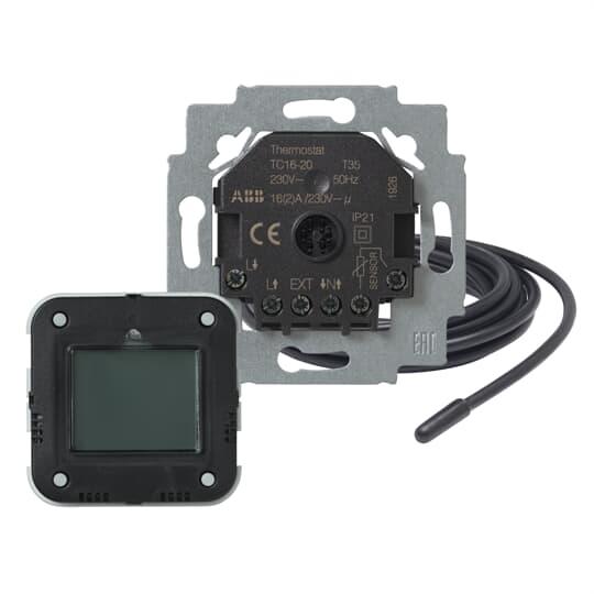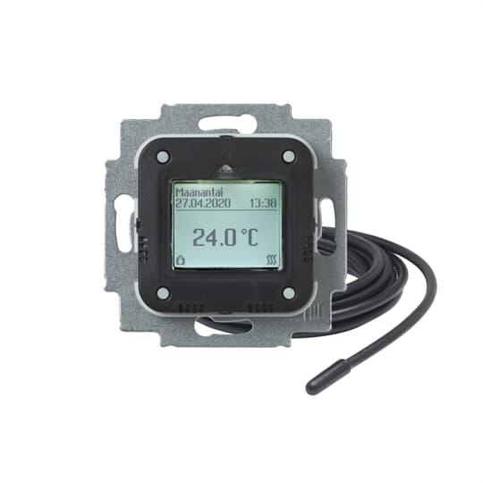 Termostat med låg insats utan centrumdelar (20 mm monteringsdjup) som uppfyller kraven för ekodesign. Termostaten är förprogrammerad för enkel uppstart. Märkspänning 230V AC ± 10% 50 Hz.