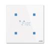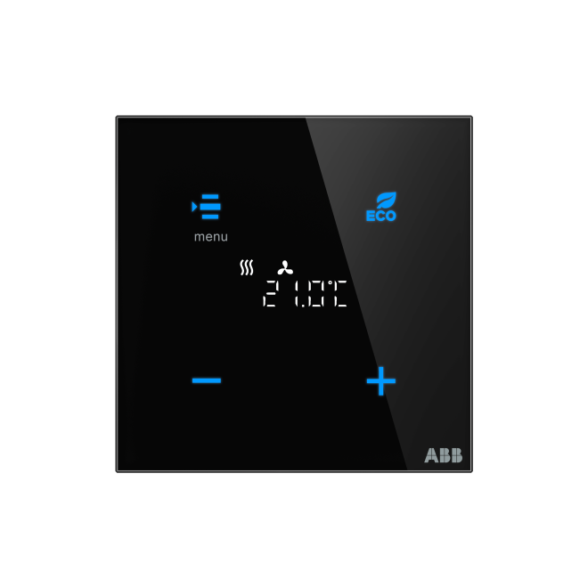 Fritt konfigurerbart multifunktions knapp. Ikonerna och/eller texterna konfigureras med hjälp av ett webb konfigurations verktyg. Med integrerad KNX-busskopplare. Med integrerad temperatur givare. Stöd för KNX funktioner genom innovativt färg koncept (gult = ljus, blått = markis, orange = RTC, magenta = scen och vit = neutral/ingen tilldelad funktion) eller standard belysning röd/grön. RTC är en konstant rums temperatur regulator för Fan-coil i 2-rörs-och 4-rörssystem samt värme-eller kyl system. Fan-coil kan växlas manuellt eller i automatiskt läge. Klass av RTC 1. Bidrar till energi effektivitet för rums uppvärmning 1,0%. Med integrerat KNX-busskoppel.Bussförbindelse via bussklämma.