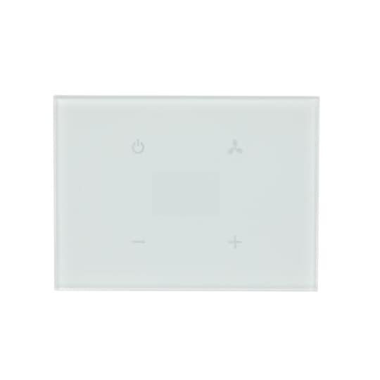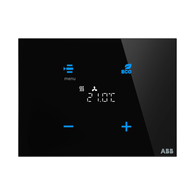 Fritt konfigurerbart multifunktions knapp. Ikonerna och/eller texterna konfigureras med hjälp av ett webb konfigurations verktyg. Med integrerad KNX-busskopplare. Med integrerad temperatur givare. Stöd för KNX funktioner genom innovativt färg koncept (gult = ljus, blått = markis, orange = RTC, magenta = scen och vit = neutral/ingen tilldelad funktion) eller standard belysning röd/grön. RTC är en konstant rums temperatur regulator för Fan-coil i 2-rörs-och 4-rörssystem samt värme-eller kyl system. Fan-coil kan växlas manuellt eller i automatiskt läge. Klass av RTC 1. Bidrar till energi effektivitet för rums uppvärmning 1,0%. Med integrerat KNX-busskoppel.Bussförbindelse via bussklämma.