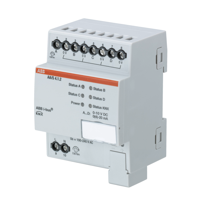 Analogaktor omvandlar KNX telegram till spänning eller strömsignaler. Dessa analoga utgångssignaler används för att reglering. Till exempel kan anordningar för uppvärmning, luftkonditionering eller ventilation regleras beroende på den information som överförs via bussystemet. Denna analogaktor är en 4-kanals DIN-monterad enhet. ABB i-bus Tool stöds för avancerad diagnostik och förenklad driftsättning.