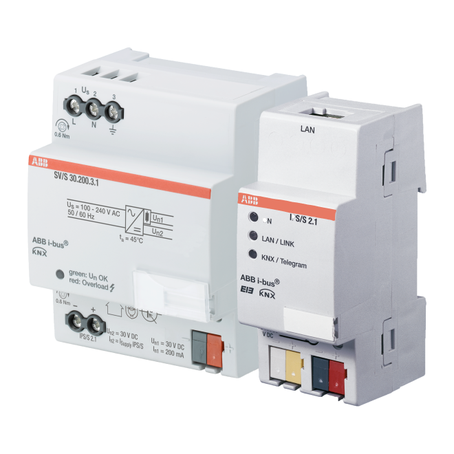 KNX strömförsörjning och IP gränsnitt i kombination är En enhet för spänningsmatning av små KNX-system och för anslutning till ett Ethernet-nätverk. Driftspänningen för 20 st KNX-enheten. IP gränssnitt stöder 1 styck KNX/IP tunnel anslutning. Lämplig för t.ex. hotellrum som kopplas mot BMS system.
