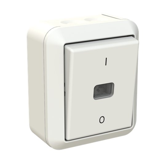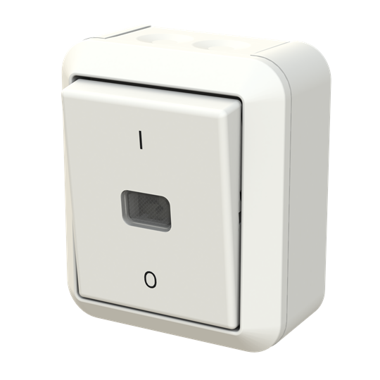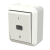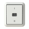 Strömställare för utanpåliggande montage med snabbanslutning. Har 2 separata X-plintar. Glasklar lins utan symbol är monterad, Levereras utan lampa
