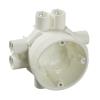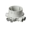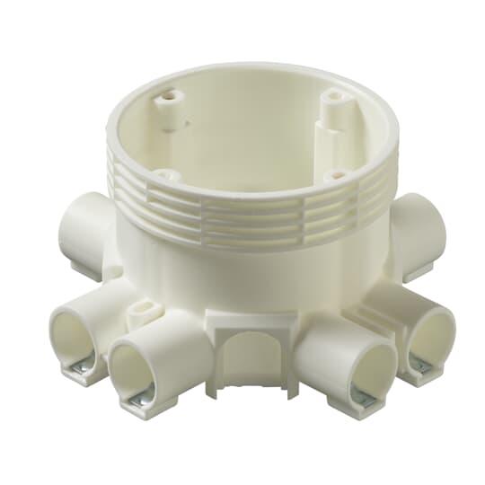 På sidorna av fördelningsdosa AU8.73 finns åtta fasta stutsar försedda med låsfjädrar för Ø 20. Skruvavstånd 78mm. Det går att ansluta fyra lösstutsar till dosans sidor och fyra möjligheter för bottenstutsar. Dosans höjd är 73mm.  Tillverkad av halogenfritt material (IEC/61249-2-21) och uppfyller glödtrådsprovets krav enligt standard IEC/EN60670:2005 (850°C). Max antal ledare 40 st.